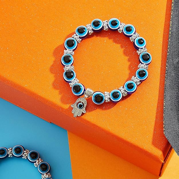Unisex-Adult Turkish Evil Eye Blue Beaded Hamsa Charm Stretch Bracelet